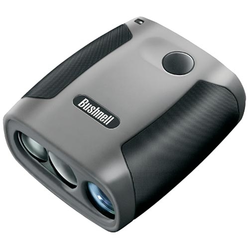 The Bushnell Yardage Pro Sport 450 laser rangefinder offers you a compact, weather-resistant design with a textured grip on a sleek, streamlined casing. It comes with a carrying case and a strap.