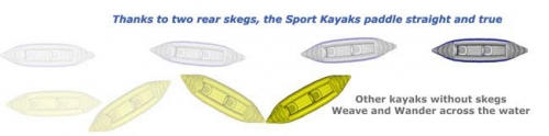 Cheaper competitive boats without rear skegs just weave and wander across the water, wasting your paddling effort. The Sport Kayaks feature two molded skegs - just like a surf board - so you go faster and further with less paddling effort.