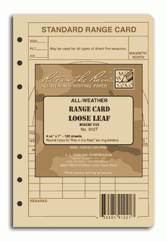 The Tactical Loose Leaf sheets have a round, six-hole punch to fi t the "Rite in the Rain" Field Ring Binders. 100 sheets per pack. Covers and kits are also available. The holes fit the Franklin Covey "Compact" size punch.
