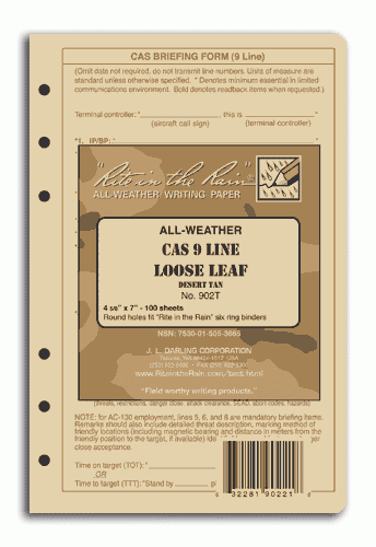 The Tactical Loose Leaf sheets have a round, six-hole punch to fi t the "Rite in the Rain" Field Ring Binders. 100 sheets per pack. Covers and kits are also available. The holes fit the Franklin Covey "Compact" size punch.