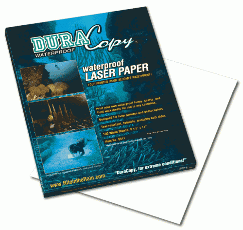 Copy or laser print your own waterproof forms. Ideal for any extreme situation. Use in your photocopier or laser printer on both sides. Not for ink-jet printers.